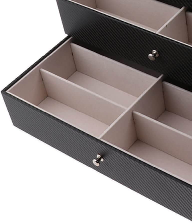 3 Layers Large Capacity Organizer Box with 18 divider for all of your glasses, sunglasses, eyeglasses, watches, jewelry, hair accesories, etc.Super Soft-lined interior protects your collections from scratches whatsoever.Transparent cover lids with visible window, convenient to pick items easily.Lockable metal lock, making sure your glasses/watches/jewelry security.Material: high-grade carbon fiber + PU + lintSpecification: Model Number: Glasses Organizer BoxItem Type: JewelryPackaging & Display Jewelry Packaging & Display Type: Carrying CasesMaterial: LeatherPackage Include: 1*Sunglasses storageIf you have any questions about the product, please me, we will you within 24 hours and give you a satisfactory answer.Suitable for: Sunglasses, Eyeglasses, Reading Glasses, Jewelry etc.