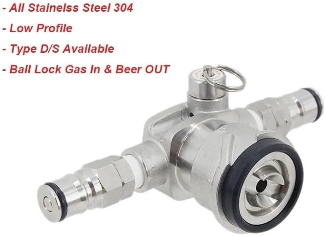 Low profile beer barrel coupler with ball lock gas beer column - all stainless steel 304 homemade beer barrel operator - space saving beer barrel valve. This low-key beer barrel coupler is designed specifically for homemade beer and draft beer systems, providing a space saving solution for compact beer barrel installations with limited space. It is made of 304 stainless steel and has durability.And its low profile design is located about ¼ inches above the edge of the barrel, making it easier to install and operate in enclosed spaces.This beer barrel coupler is equipped with a ball lock gas beer column, which can connect gas pipelines to both ball lock beer barrels and commercial beer barrels, making it suitable for mixed ventilation systems. This enables you to quickly and easily exchange lines between different types of buckets, simplifying your home wiring workflow. Whether you are setting up a new bucket generator or upgrading an existing ventilation system, this bucket coupling can provide a reliable and practical solution. Its sturdy structure and functional design make it a valuable addition to any home user setting, supporting the smooth and efficient operation of your draft beer system.==========Product Type : KegsMaterial : Stainless steelOrigin : Mainland China